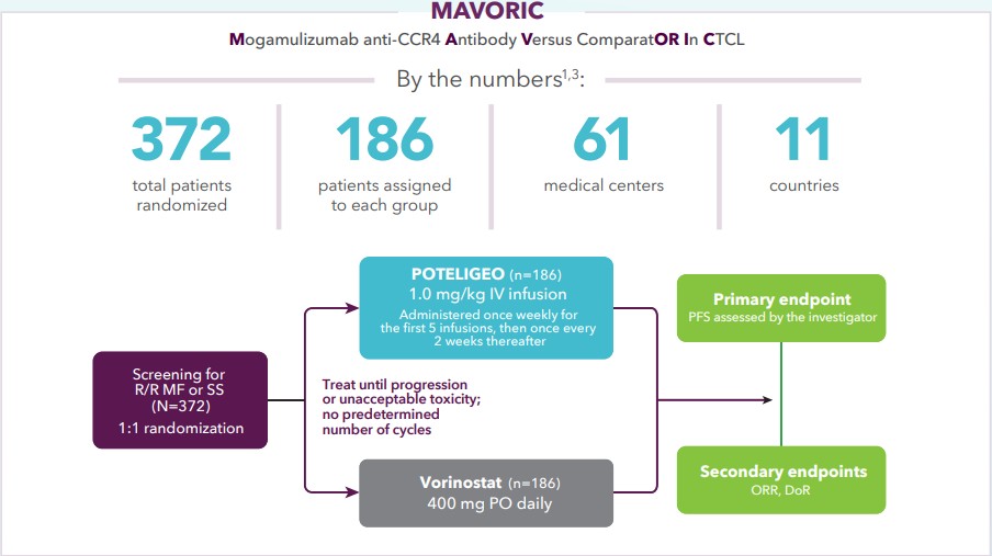 372 patients with Mycosis Fungoides (MF) and Sézary Syndrome (SS) were evaluated across stages IB-IV for PFS as well as overall response rate (ORR) and duration of response (DoR) in multiple disease compartments (skin, blood, lymph nodes, viscera).